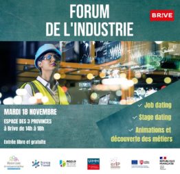Retrouvez-nous mardi 18 novembre 2025, de 14h à 18h au forum de l'Industrie, à l'Espace des Trois Provinces de Brive-la-Gaillarde.